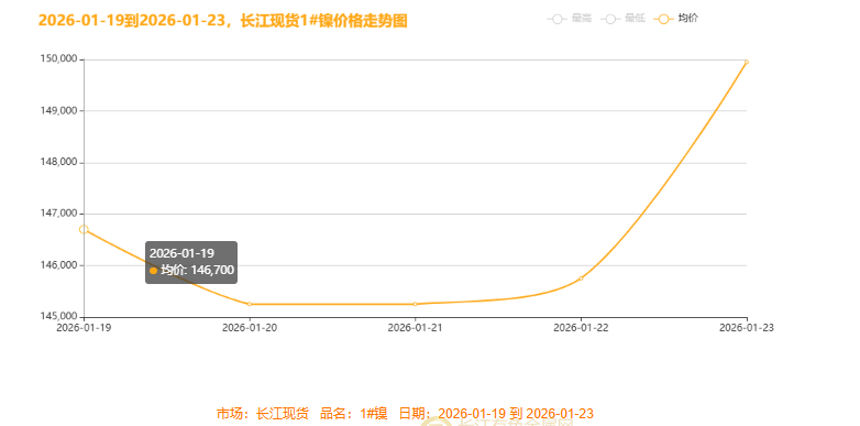 市场情绪在周中迎来关键转折。特朗普戏剧性取消对欧关税威胁,并与北约就格陵兰岛达成协议,这一重大政策反转极大缓解了全球贸易紧张局势。同时,美国核心PCE数据维持高位,强化了美联储将降息推迟至6月的预期,美元维持弱势。多空信息交织下,前期恐慌情绪得以出清,但市场在等待更明确的方向信号。镍价在145,250-145,750元/吨区间呈现弱势平衡,走势波澜不惊,进入关键的观察与蓄势阶段。