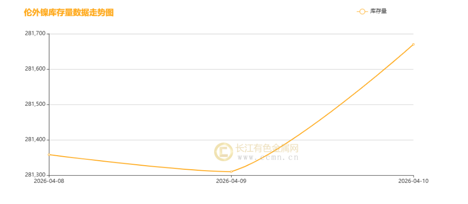 本周伦镍库存呈先抑后扬、大幅回升走势:4 月 8 日库存超 28.13 万吨,4 月 9 日微去库至阶段低位,随后大幅攀升,10 日冲高至281670吨, 大幅增加360吨,全周库存增幅明显。库存反弹主因是现货溢价回落刺激进口到货增加,叠加下游接货意愿偏弱,现货流通宽松推动库存累积。