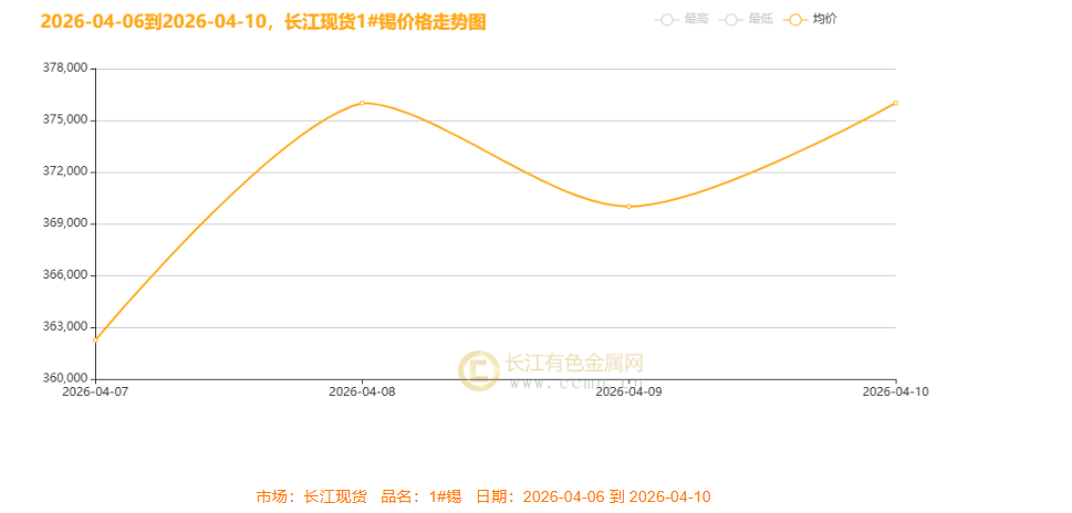 周初(4.7)美伊冲突白热化、ADP 数据超预期强化高利率预期,美元高位震荡(99.845→99.480),叠加避险资金撤离,锡价探底至 362250 元 / 吨,国内流动性宽松与低库存限制跌幅。周中(4.8)美伊临时停火协议落地,避险情绪骤降,美元暴跌破百(98.750→98.850),美股科技股暴涨(纳指 + 2.80%),锡价暴涨至 376000 元 / 吨;4.9 美联储纪要偏鹰引发获利盘了结,锡价回调至 370000 元 / 吨。周尾(4.10)美伊谈判启动、国内 PPI 转正(工业盈利修复),锡价重回 376000 元 / 吨。