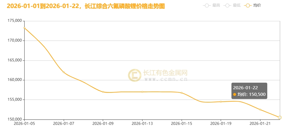 1月22日,长江综合数据获悉,六氟磷酸锂市场价跌至14.6万-15.5万元/吨区间,均价单日下挫2000元至15.05万元/吨。进入2026年以来,这个曾被誉为"锂电黄金 "的关键材料持续承压,累计跌幅已达13.13%。与之形成鲜明对比的是,碳酸锂期货市场延续强势运行态势,两者同处新能源产业链核心环节却走出冰火两重天的行情。这场看似矛盾的价格博弈,实则折射出行业正经历着技术迭代与市场重构的深度变革。