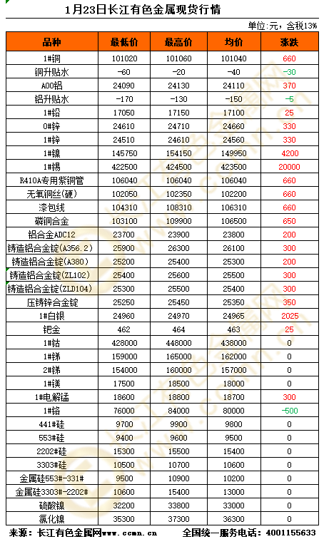 当前位置: 长江有色金属网 > 资讯首页 > 行业要闻 > 1月23日长江有色金属现货行情