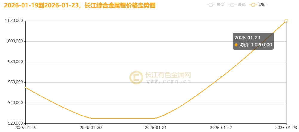 1月23日,金属锂市场迎来“暴力拉升”:长江综合数据显示,金属锂最新价报1,020,000元/吨,单日大涨55,000元/吨,涨幅达5.7%,创2026年开年最大单日涨幅。这一价格已较2025年末上涨超30%,持续刷新历史高位。期货市场上,相关锂金属合约同步跟涨,资金情绪显著升温,市场目光再次聚焦于这个“锂电产业链皇冠上的明珠”。
