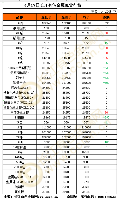 4月17日长江有色金属现货行情